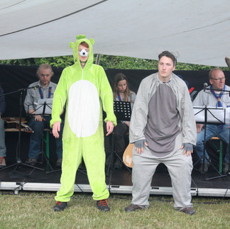 Den Tag haben wir mit einer Lagerfeuerrunde ausklingen lassen. Zwischen den Fahrtenliedern, die den Bezirk schon lange begleiten, wurde die Geschichte des Bezirks seit 1962 nacherzählt und so manche Zusammenhänge deutlich. Alle Ereignisse lassen sich im Jubiläumsheft nachlesen. Zwischen Liedern und Erzählungen haben uns Trolle, Drachen, Bären und Krokodile besucht und auch das "Karamel" hat alle mit Karamellbonbons und Tricks erfreut. Zum Abschied wurde traditionell "Nehmt Abschied Brüder" gesunden.